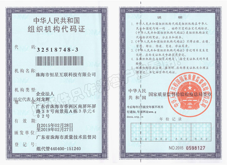 恒星互联组织机构代码