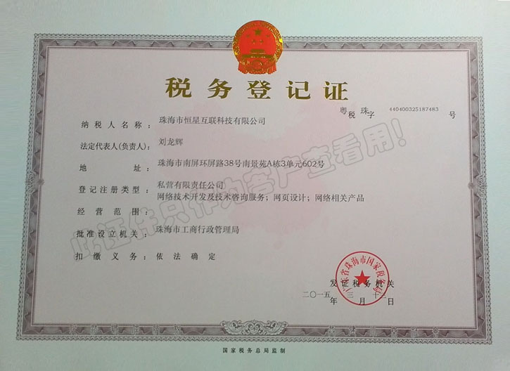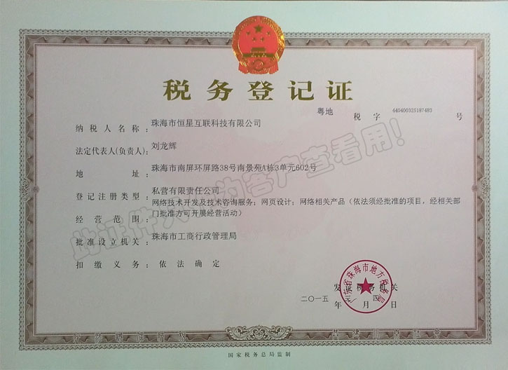 恒星互联国税登记证