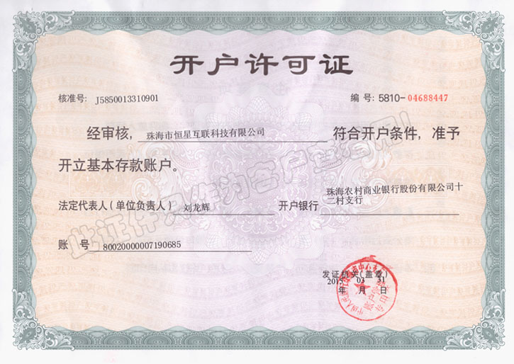 恒星互联银行许可证